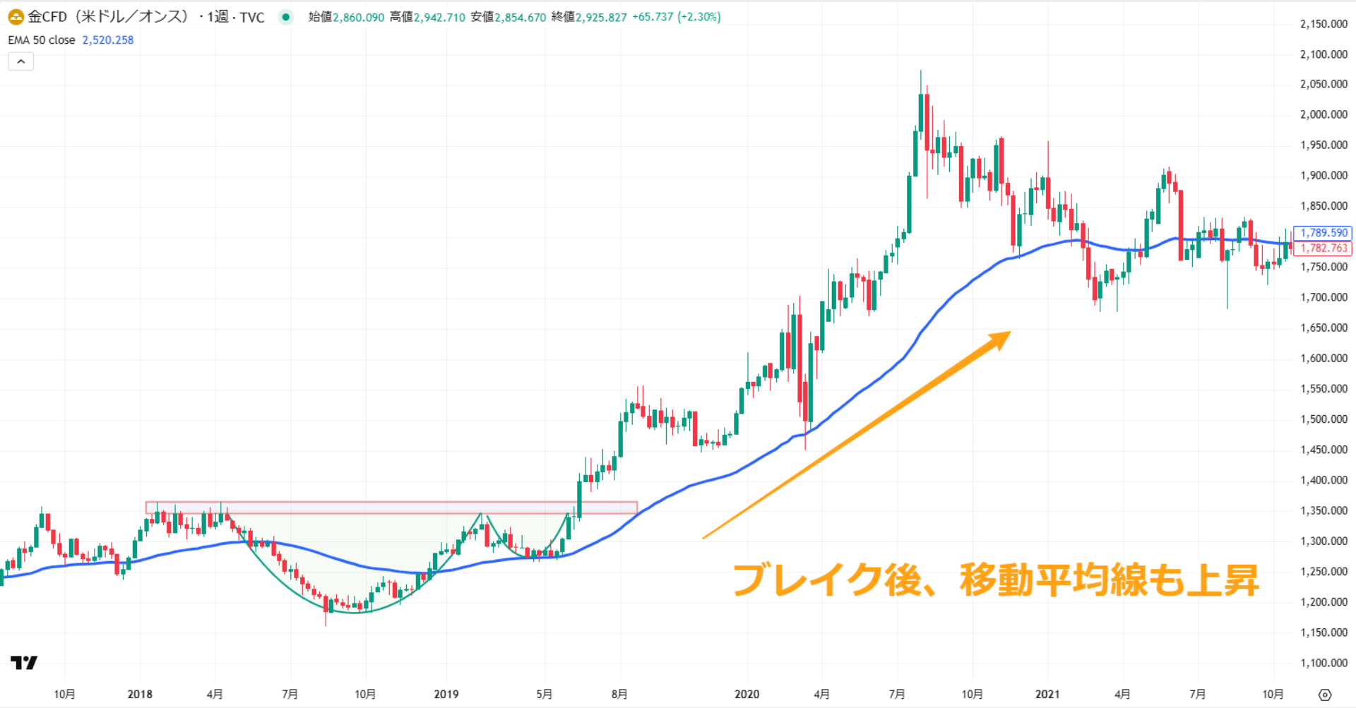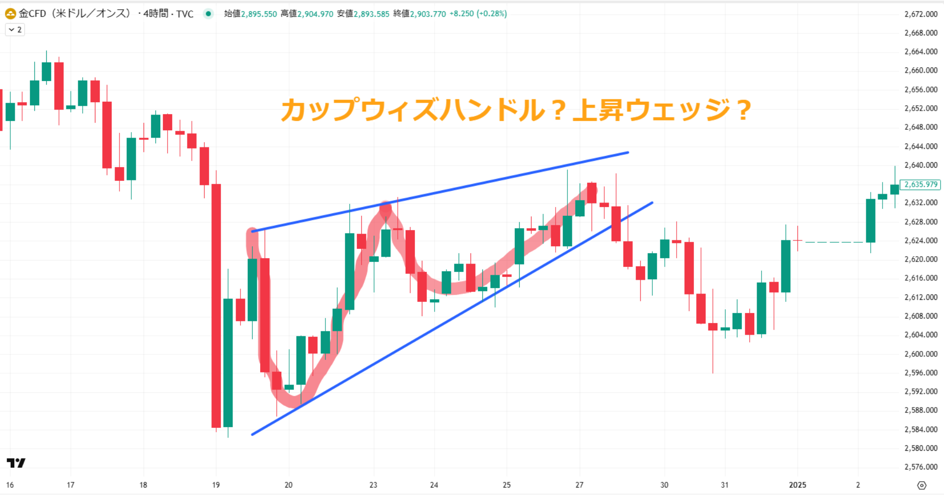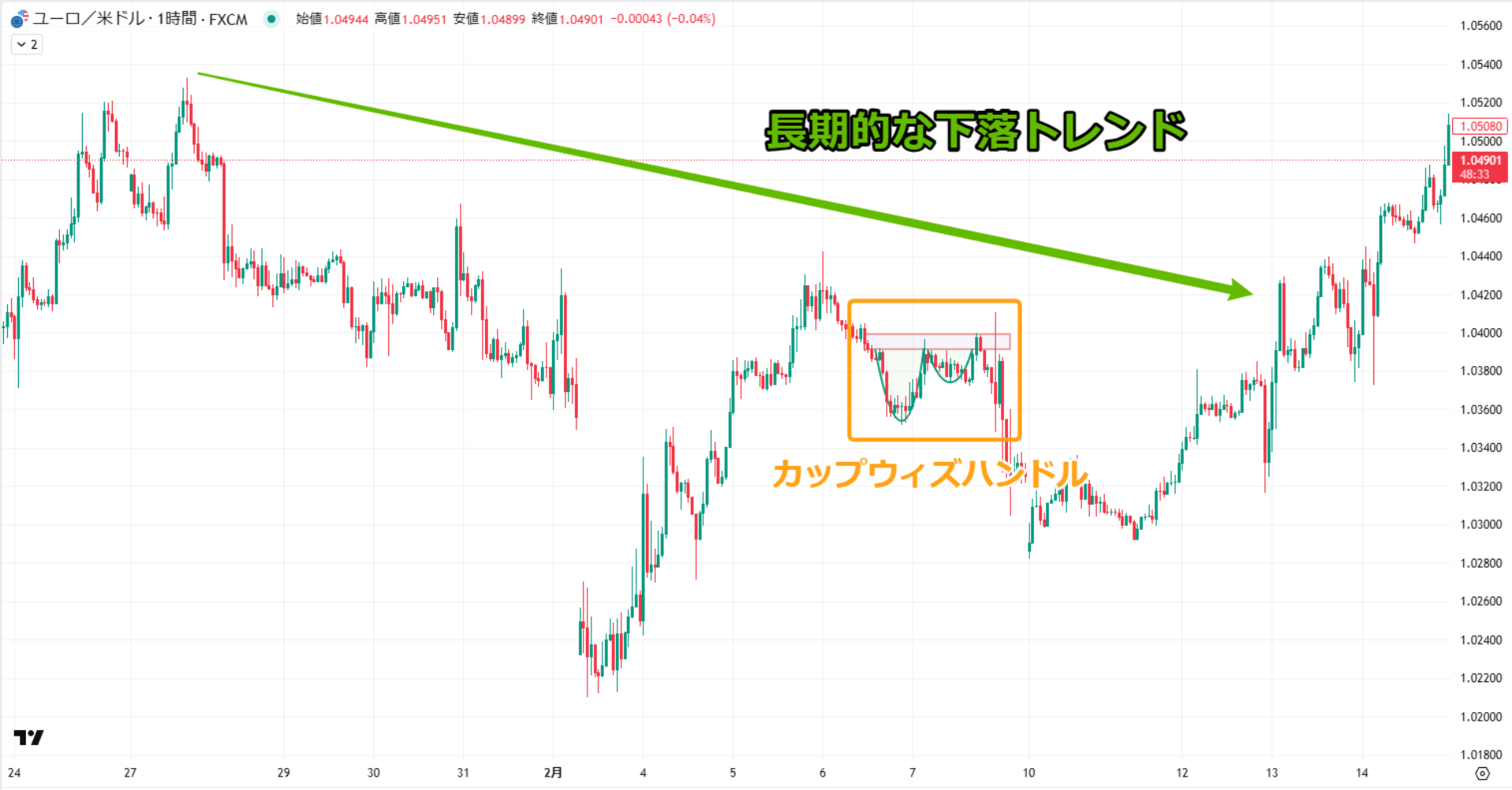 カップウィズハンドルは、長期的な下落トレンドからの回復を示すチャートパターンとして多くのトレーダーに知られています。