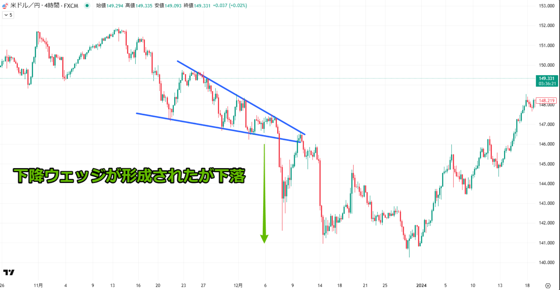 ただし実際の相場では、下降ウェッジをブレイクしたのにすぐに下落するなどの「だまし」が発生するケースも少なくありません。