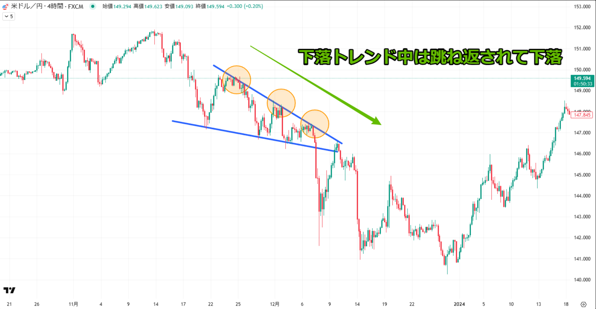 - 下降ウェッジの練習はTradingCultの無料トライアルで